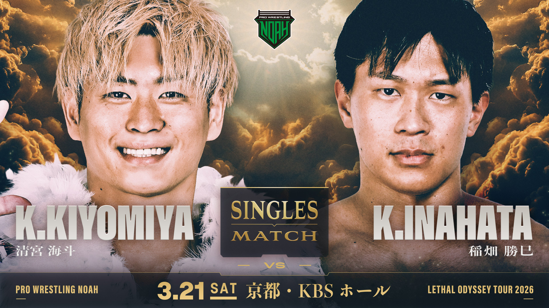 3月21日(土)「LETHAL ODYSSEY TOUR 2026」京都・KBSホール大会の全対戦カードが決定しましたのでお知らせいたします。