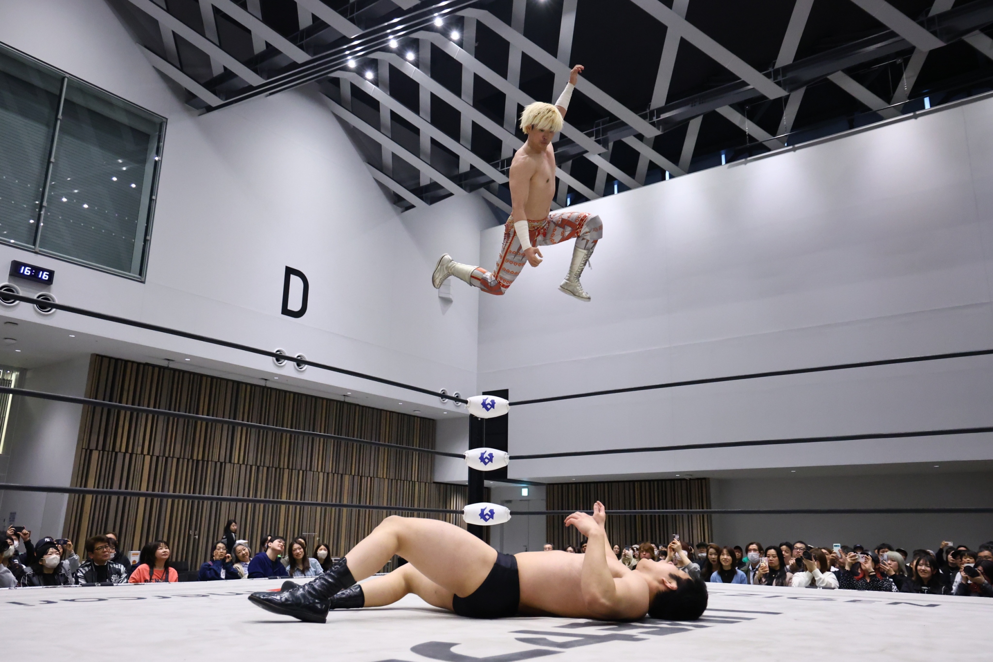 【Yoshikiの話】「ヤング・ボーイ、いや、フューチャー・ボーイ、鶴屋と今日ファイトして、改めて真っ直ぐプロレスに、真摯に向かう姿、それは本当に素晴らしいと思ったし、ミーのカラーも正さないとなと思いました。ミーはすべてのエクスペリエンス、そしてオーディエンスの応援を糧として、名古屋、狼退治をしっかりしたいと思います。ぜひヤング・ボーイズ、いや、フューチャー・ボーイズたちの応援、そしてミーのチャンピオンロードをキープ・ウォッチングしていてください。シー・ユー・スーン、バイバイ」