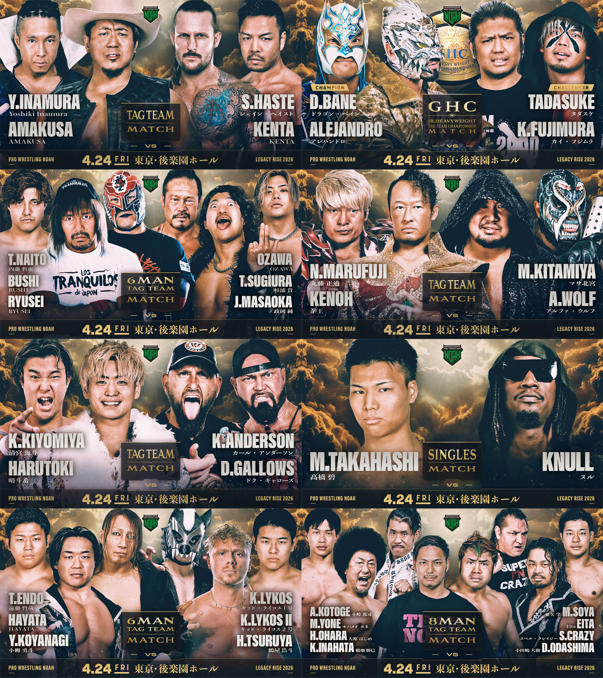 4月24日(金)「EGACY RISE 2026」東京・後楽園ホール大会の全対戦カードが決定しましたのでお知らせいたします。