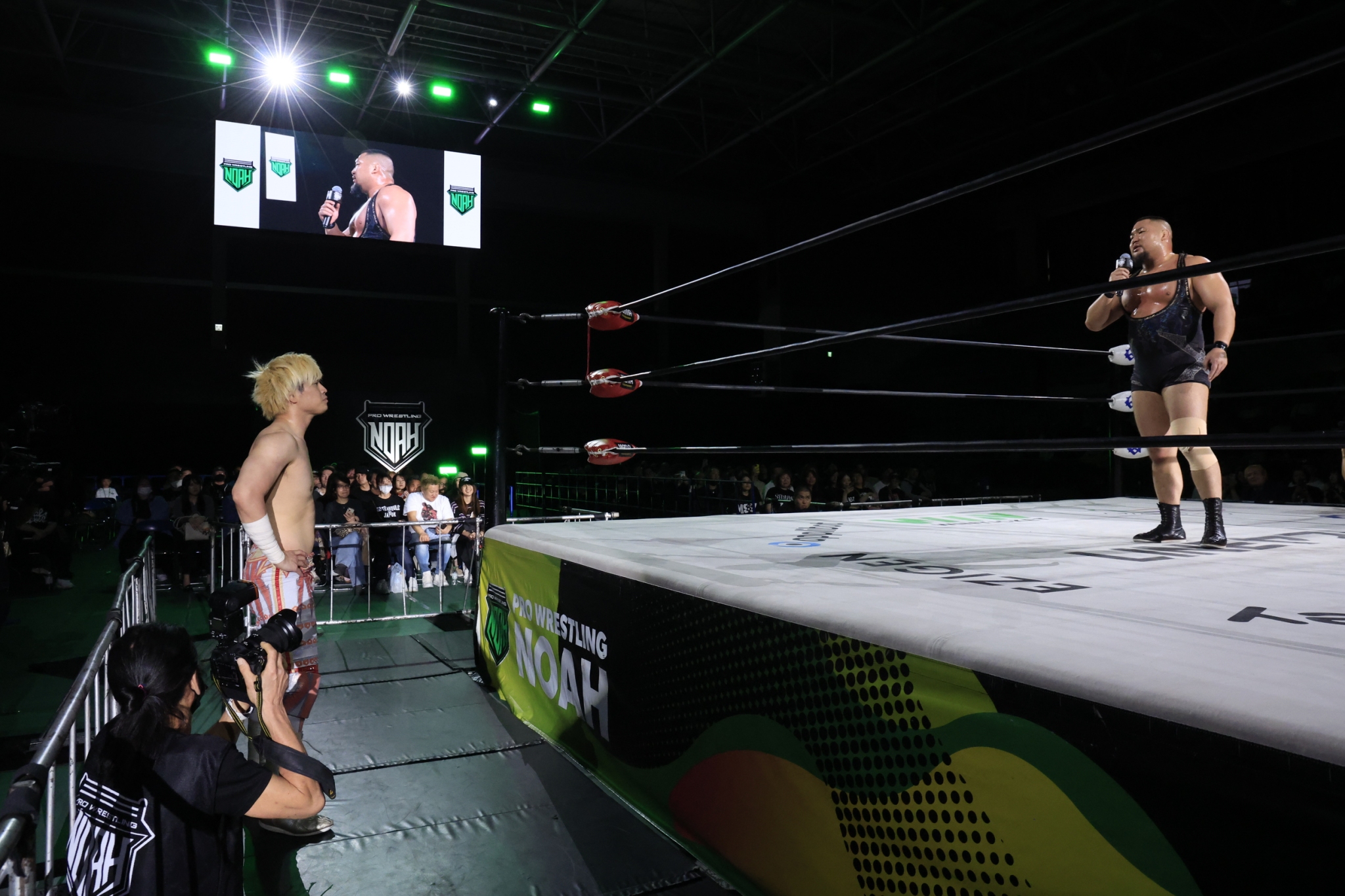 ▼2号「こうしてプロレスリング・ノアで初めての試合、デビュー戦ということで、ここにいられるのはとてもうれしいはずなのに、こういう結果になってしまった、ベルトに手が届かなかったのは凄く残念に思っている」