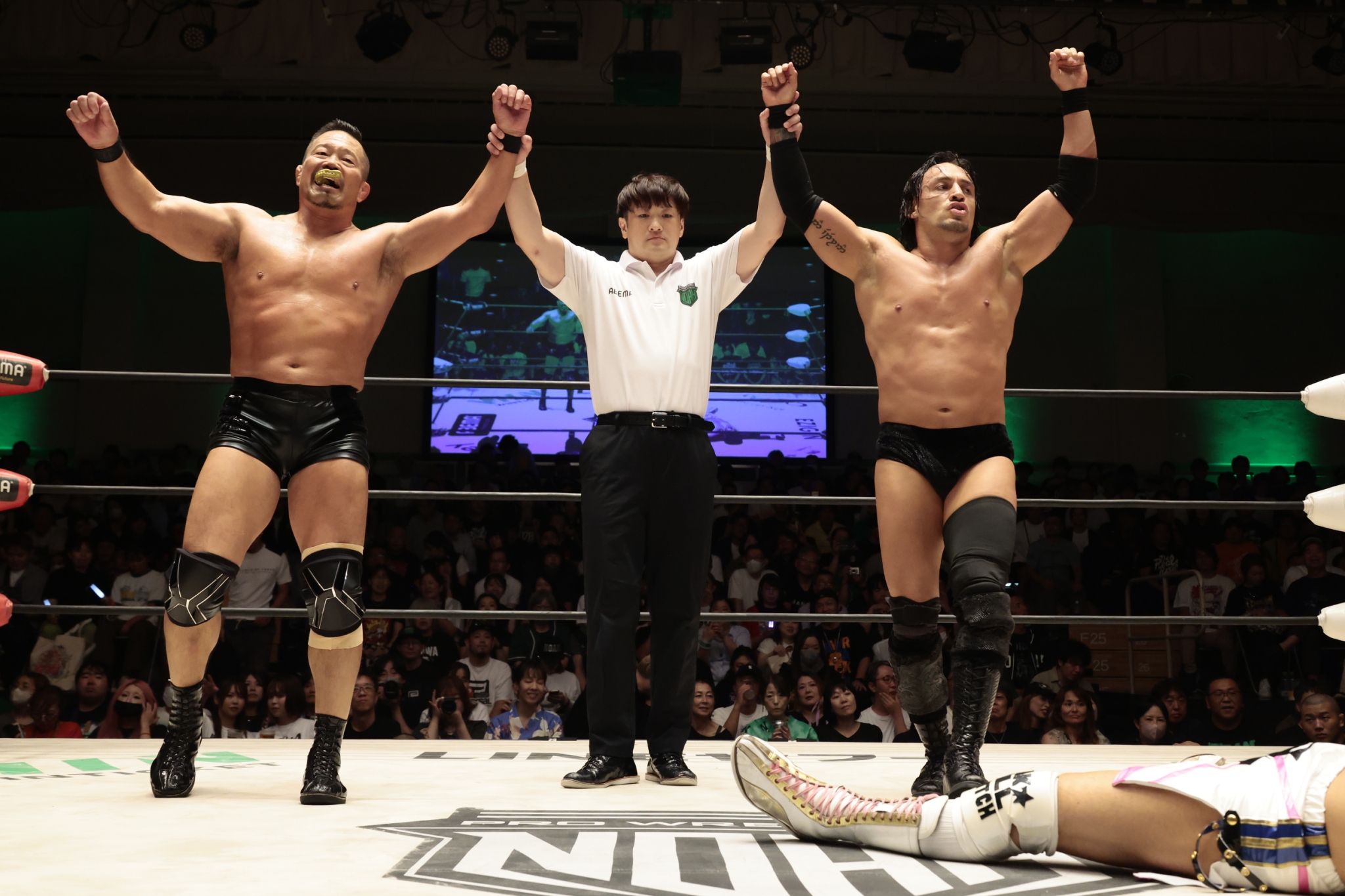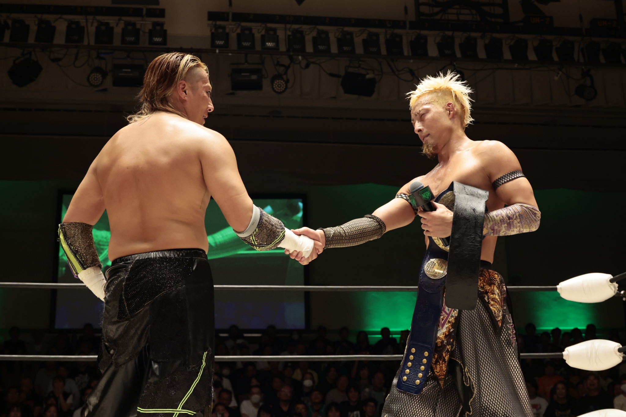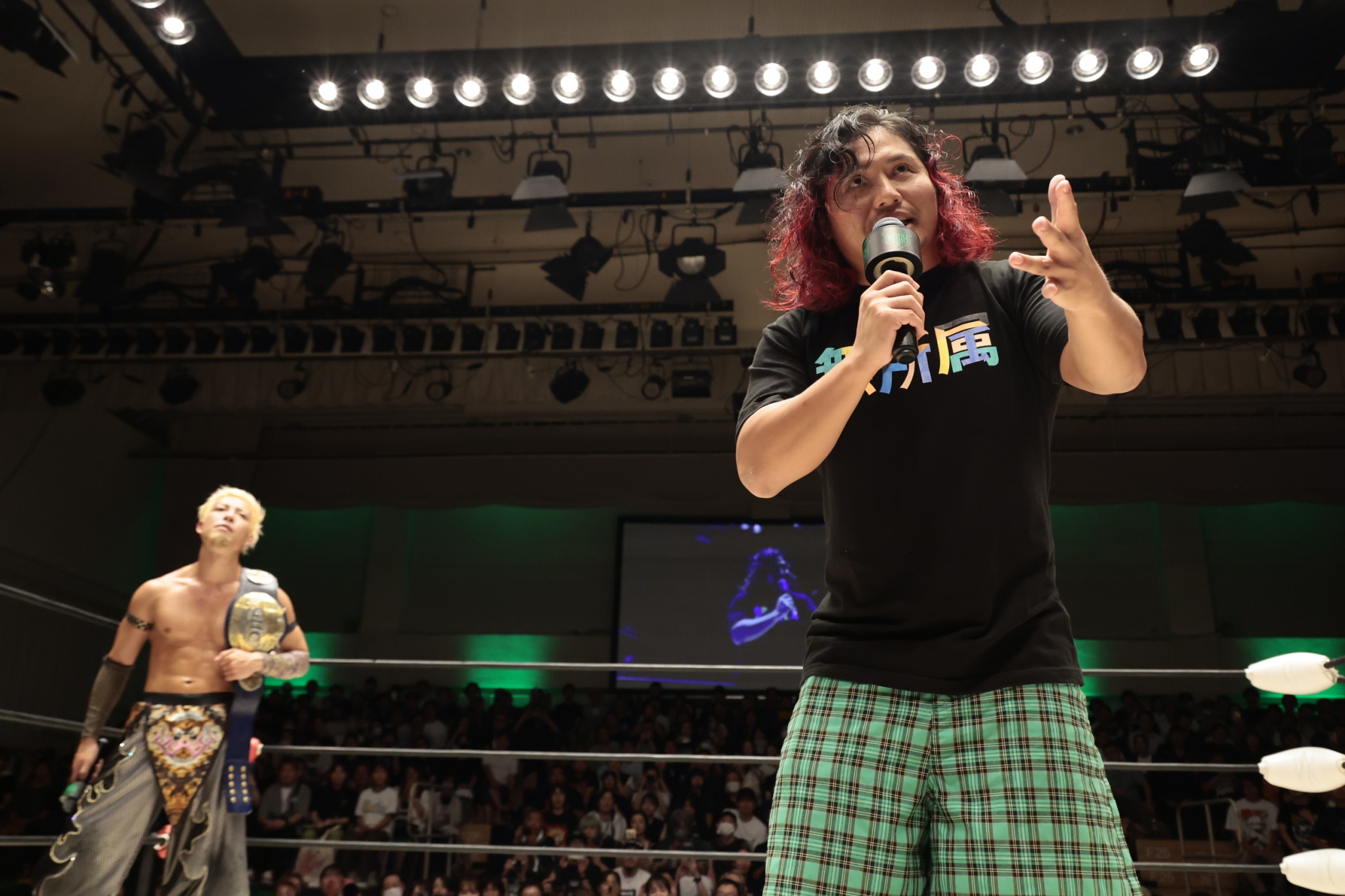 【KENTAの話】「ビックリしたね。ビックリしたけど、ご指名。まあ、いずれにしてもいつかは俺も思っているし、チャンピオンになりたいと、チャンピオンになるためにここに帰ってきたというのもあるし。拳王が望むなら、もちろん俺はいつでもいく準備できているし。明日やってやるよ。まあ、今日の試合を見てても激しい試合してたし、どう考えたって、体力的に見たら向こうのほうが不利な状態なのは明らかだし。そんな状態の中、俺を指名して、明日もタイトルマッチをやろうとする拳王の男気に応えないほうがおかしいだろ。応えないほうが男じゃないだろ。いつでもやるよ。明日やろう。でも、俺やったことないけど、ブレイクダンスだったらマジでちょっと勝てそうな気がする、あいつに。今日見た感じだと。やったことないけど、見た感じだと。でも、明日は試合で俺の首をかっ切るって言ってるけど、そうはいかない。俺だってやる時はやるから。もう何時間後、またここ後楽園で拳王、リング上で会うのを楽しみにしてるよ」