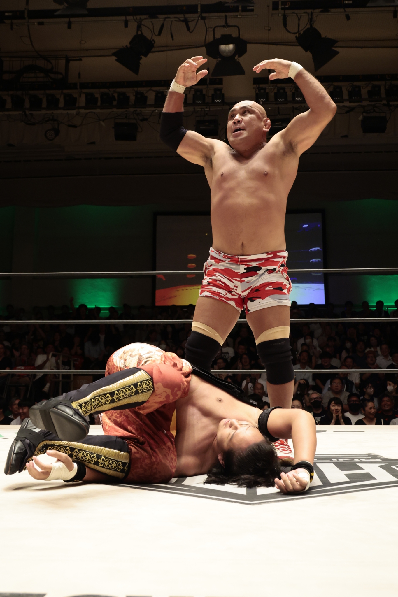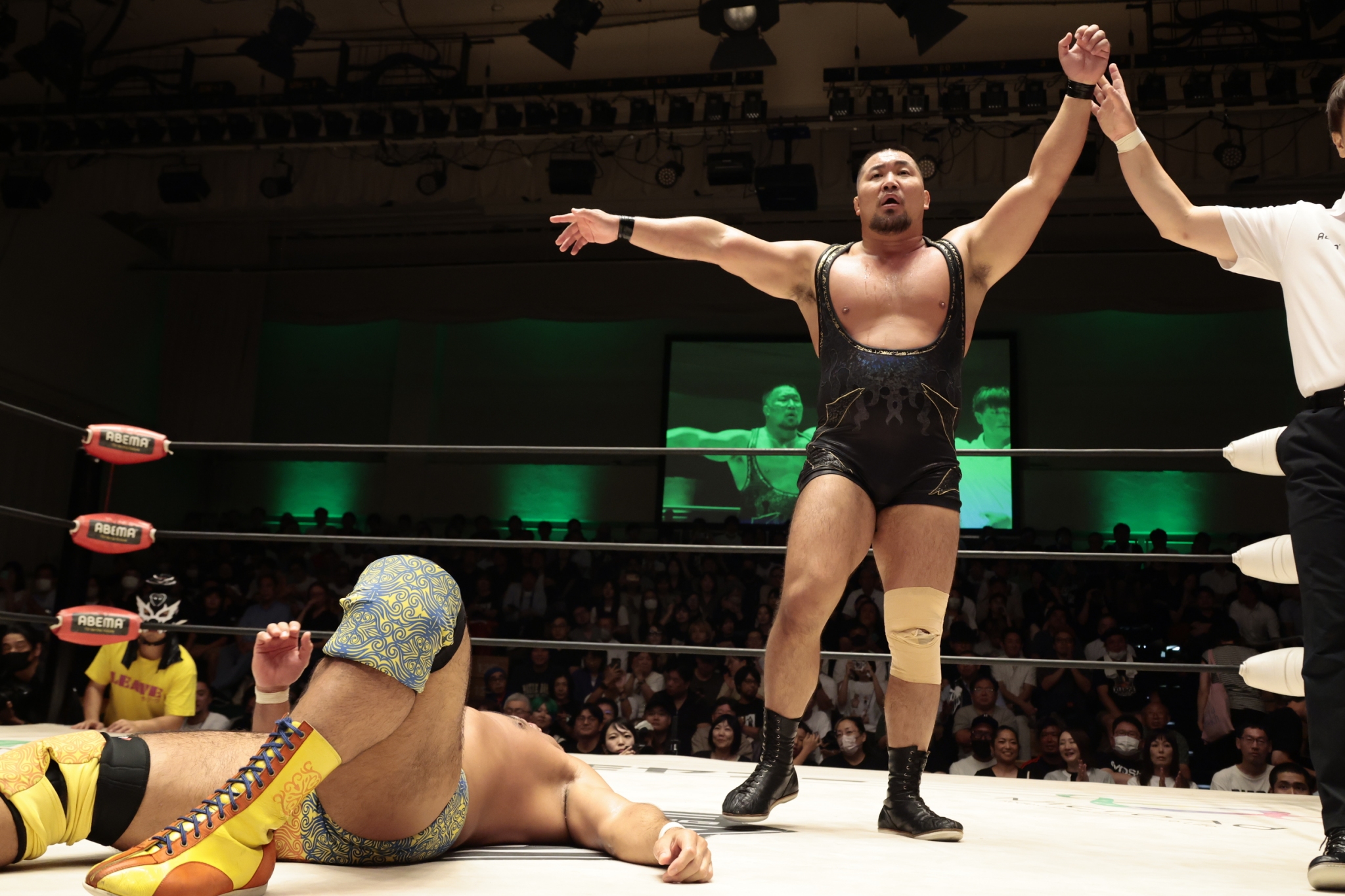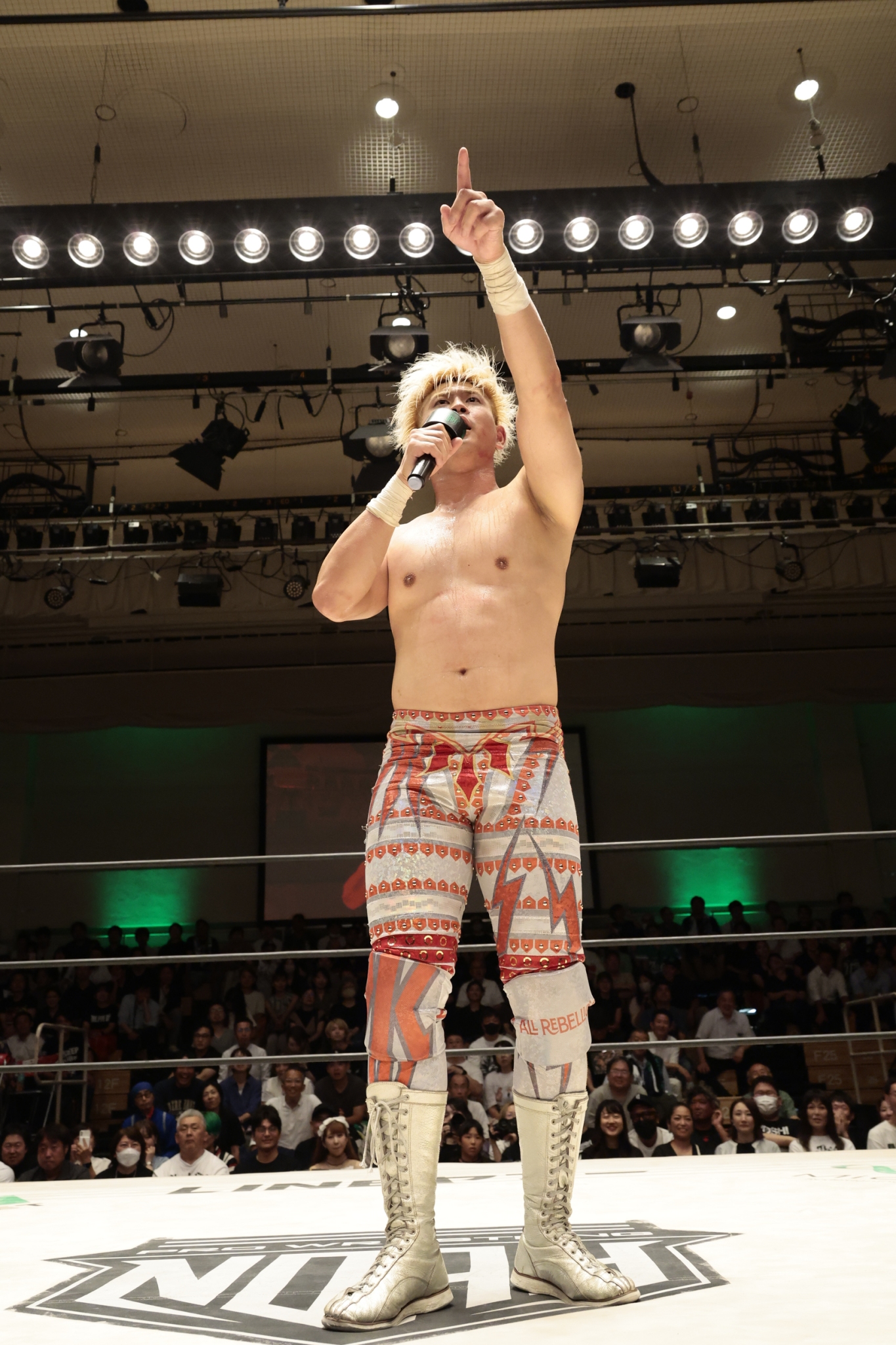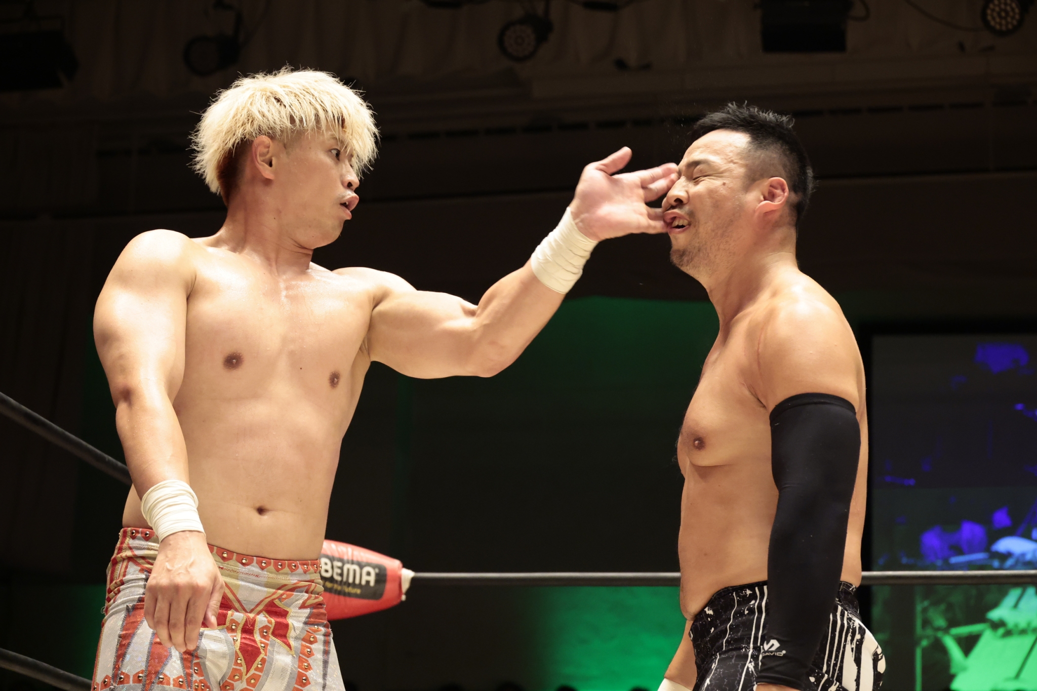 【Eitaの話】「待ってたろ? なあ、この状況。まあ、YO-HEY、病み上がりだからな。仕方ない、あの結果は。まあ、試合後、小峠、宮脇、小田嶋。あの3人が気持ちを出してくれてうれしかったけどさ。あの3人には申し訳ないけど、ここは俺の出番だよ。ノアジュニアの顔の出番だ。高橋ヒロム、俺が最速でベルトを奪ってやるよ。まあ、ベルト獲ったらよ、10月の両国も見えてくんじゃねえのか。もう一度、俺が両国、チャンピオンの状態で上がってやるよ」
