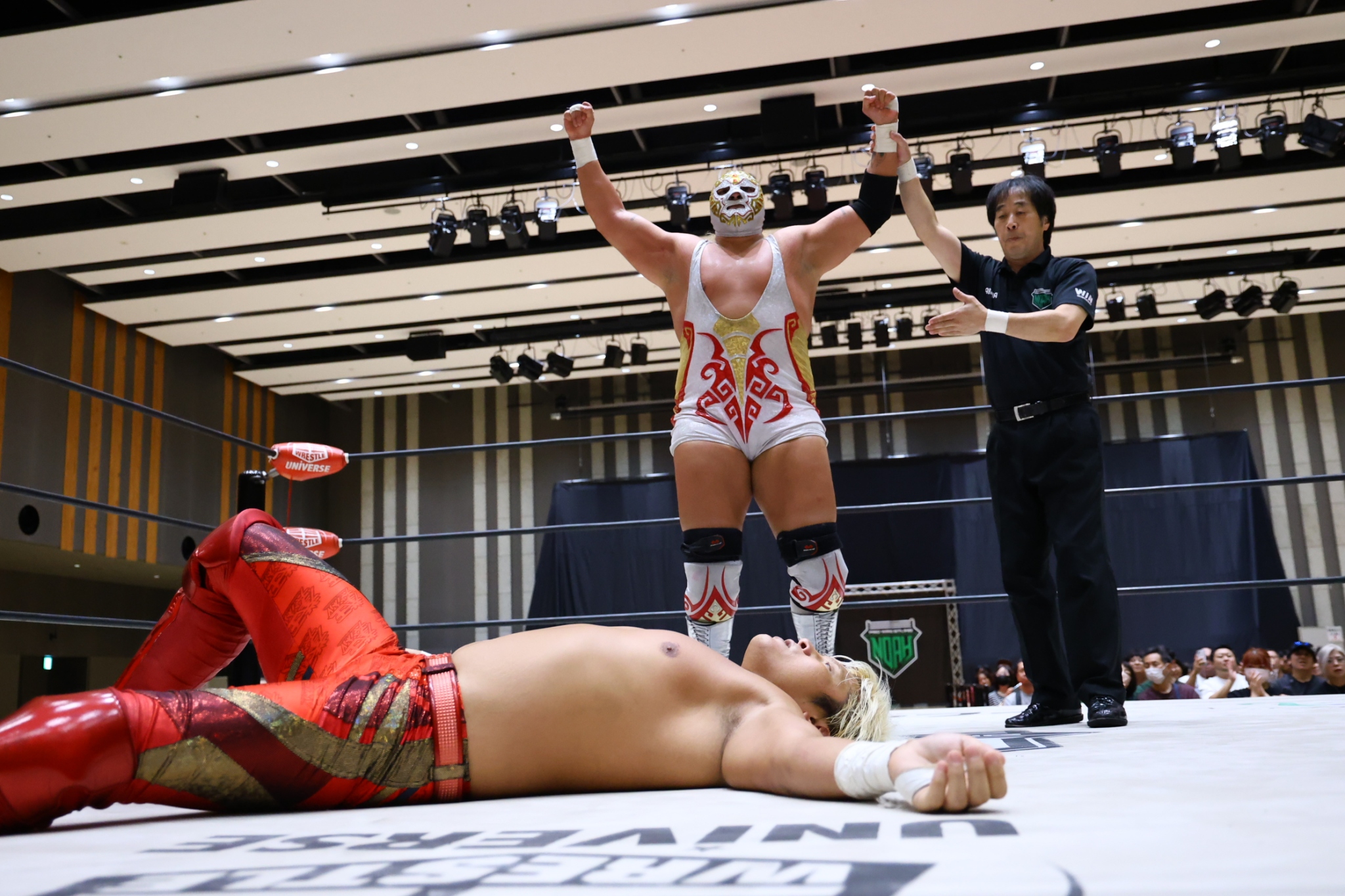 【KENTAの話】「クソ。負けて最後終わんの気分悪いね。今回、丸め込みが多かったからチャンピオンらしくないって言われることもあったかもしれないけど、俺はリーグ戦は勝つこと前提でいってるからね。リーグ戦と普通の試合じゃ戦い方が違うのは当たり前で。その中で勝ちもあれば負けもあって。でもいいじゃん。負けもあって、またここから何か新しいもの生まれそうじゃん。それでいいよ。負けたヤツ、片っ端からやってやるよ。でもね、何よりもね、やっぱN-1で久々の地方の方たちにも…地方っていうと言い方失礼だな。ド田舎の方に会いに行ったりとかして、たくさんの人たち、たくさんの田舎もんの方たちが来てくれて、会いに来てくれて。これからプロレスリング・ノアもっと力つけて、まだ行ってない場所にどんどん行けるように、今こうやって一戦一戦、積み重ねていきたいと思うし。まだNOAHが行ってない所の人たち、そこに俺たちが会いに行く日を楽しみにしててほしいなと思います。だからね、結局ね、N-1通して俺が何が言いたいかっていうと、(インタビュースペースの幕のスポンサー名を指さして)ウルラってこと」