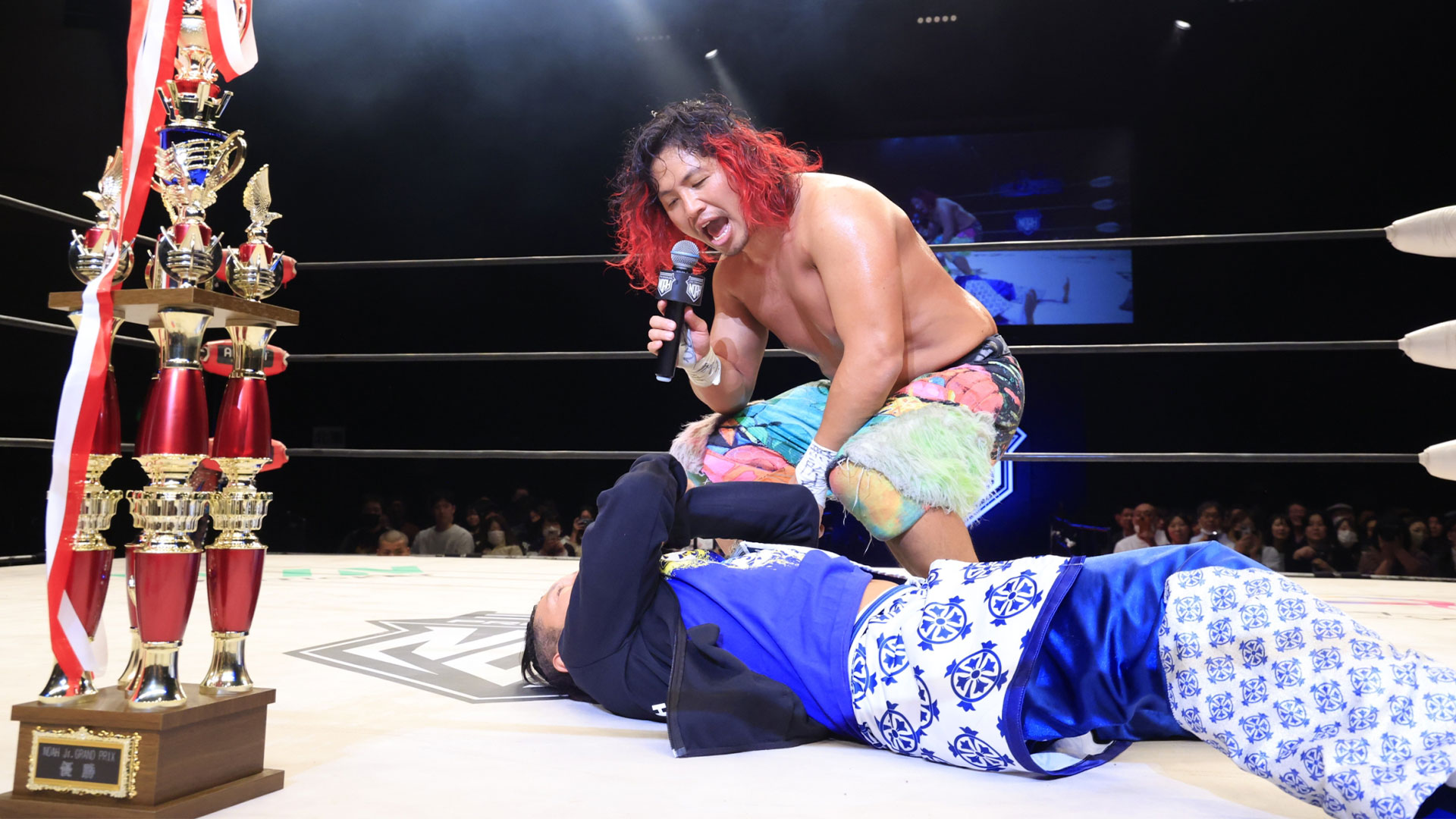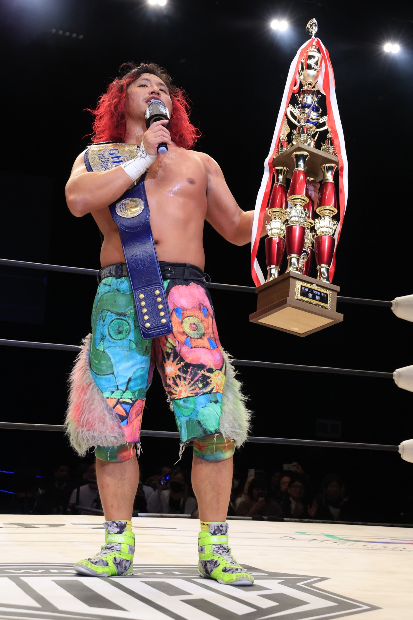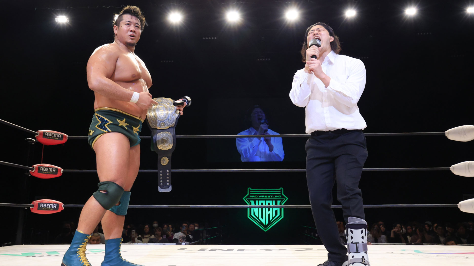 【Yoshikiの話】「まず、アット・ファースト、最初に。ミスター清宮、本当に本当にサンキュー・ベリー・マッチ。このファイトをもってミーとミスター清宮のストーリーがフィニッシュしたなんて言わせない。これはブライトなフューチャー、新しいフューチャーのビギニングです。ミスター清宮、あらためてサンキュー・ベリー・マッチ。そして、ミーがオファーを出したかった相手ではないんですけど、ミスターOZAWAがああやってリングにジャンプインしてくれて、ミスアンダースタンド、勘違いだったとはいえ、ミーのこの気持ちを彼なりのオネスティ、正直な気持ちで受け取ってくれたんで、ミーはその気持ちにしっかりと応えたいと思う。その前にミスターOZAWA、しっかりと足のケガをパーフェクトに治してきてください。ミーとユーでフェア・アンド・スクエア、ピュアでストロングで、そしてNOAHらしいホットでクールなファイトをしましょう。サンキュー・ガイズ、バイバイ」